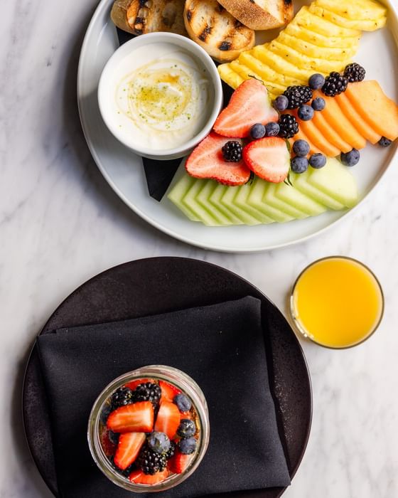 Fresh fruit & berries, toasted baguette